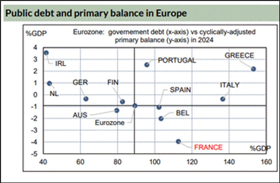 - Unlike Greece, Italy, Portugal, which are also in debt, but which operate with positive primary balances (from 1 to 3% of GDP in 2024), France is typically in negative (4% deficit compared to GDP this year ). The primary balance represents the air that a country has available to “breathe”, being the difference between state revenues and expenses (excluding interest).