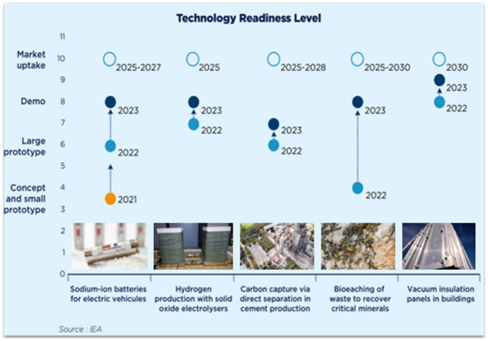 The first practical demonstration of this concept is evident by observing the speed with which new technologies are being developed to move towards a more sustainable world. The International Energy Agency (IEA) shows us, for example, how the progress made in 5 fields (sodium batteries, hydrogen production, CO2 capture in cement production, recovery techniques for minerals and rare metals and vacuum insulation panels) have been very important in the last 3 years with the actual production and market launch phase now close.